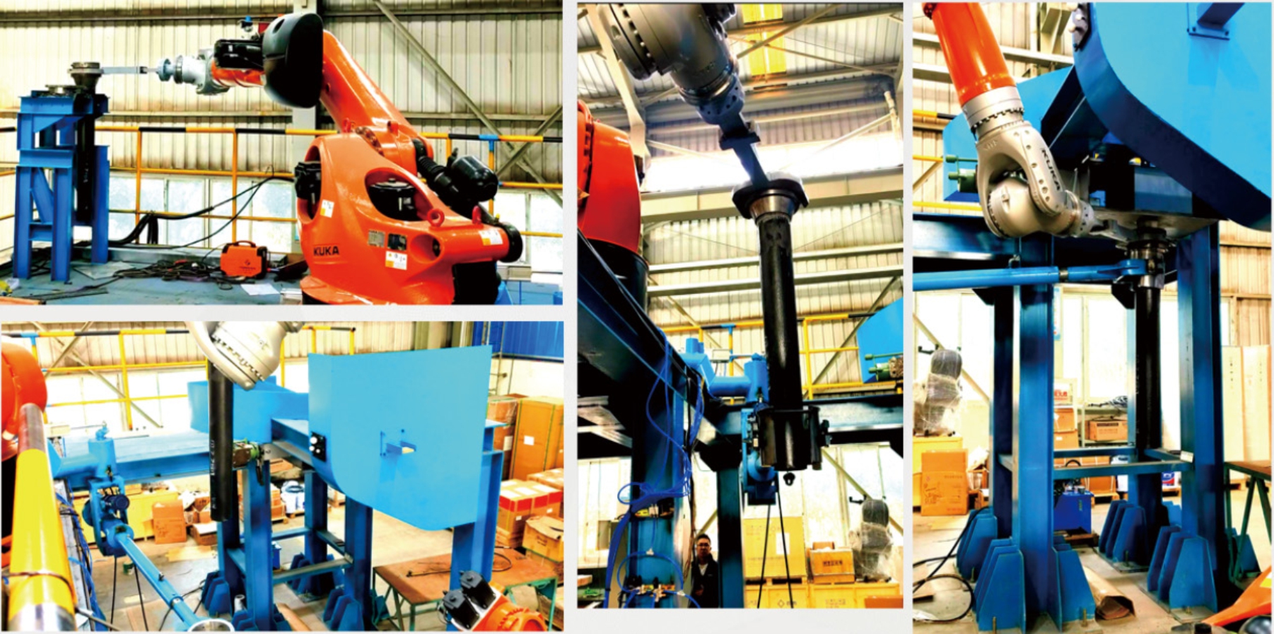 تعمل الروبوتات بالتنسيق مع الأسلحة الميكانيكية التعاونية لتعزيز كفاءة العمل.